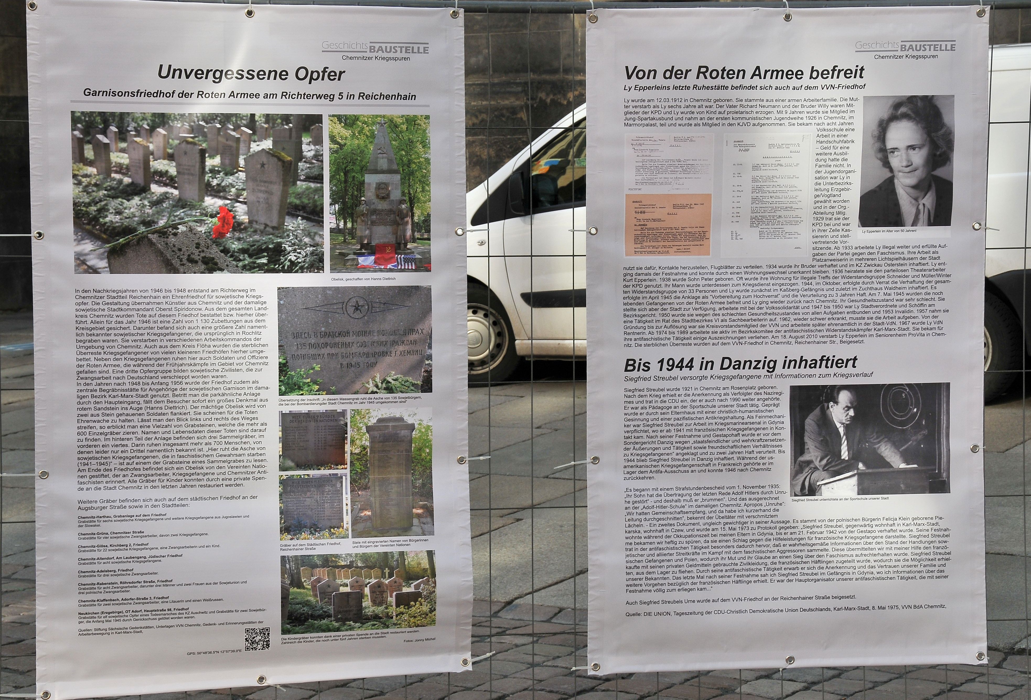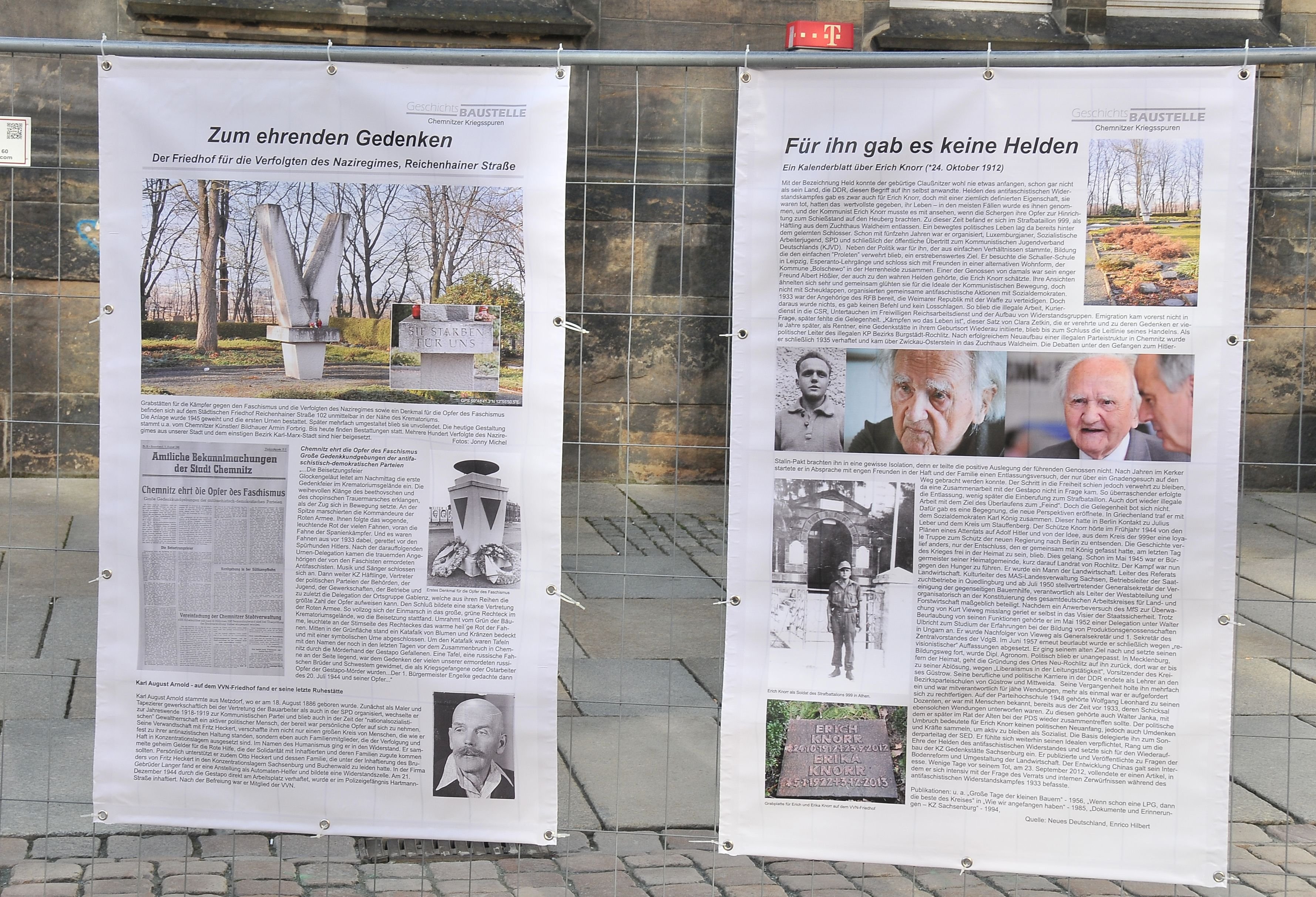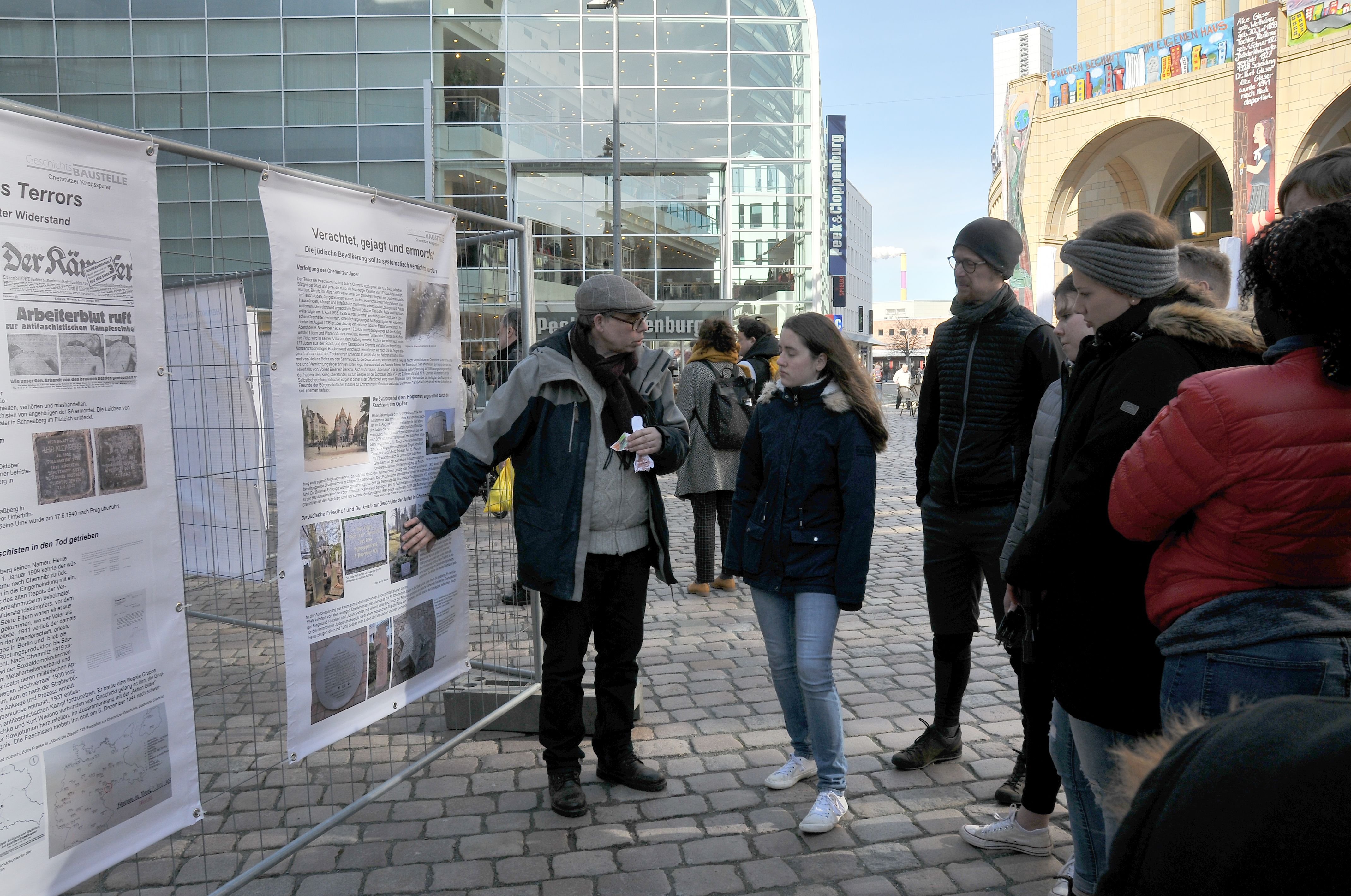 Es war uns wichtig diesen Zusammenhang von Ursache und Wirkung, den Lauf der Geschichte in ihrer Komplexität zu erfassen und zu vermitteln eben anhand von Alltagsgeschichten. Die “Geschichtsbaustelle-Chemnitz“ war der erste Schritt dazu, eine Ausstellung, die auf Ereignisse im März 1933 hinweist und in Chemnitz zu sehen war.