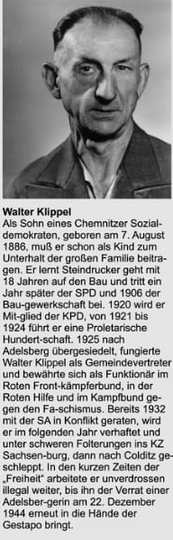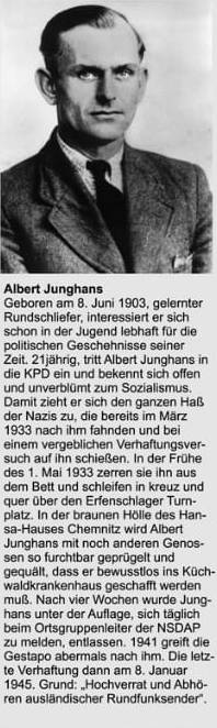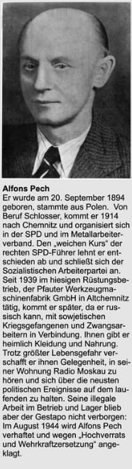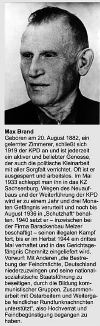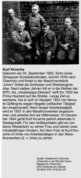Hutholz, einem Waldstück am Stadtrand von Chemnitz, als “rückfällige” politische Gefangene von Gestapo-Beamten ermordet.